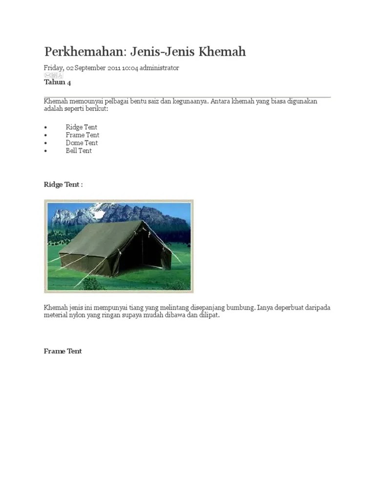 Download as docx, pdf, txt or read online from scribd. Mempunyai tiang yang melintang di sepanjang bumbung. Rekreasi luar pendidikan jasmani dan kesihatan tahun 4 cara pasang khemah.